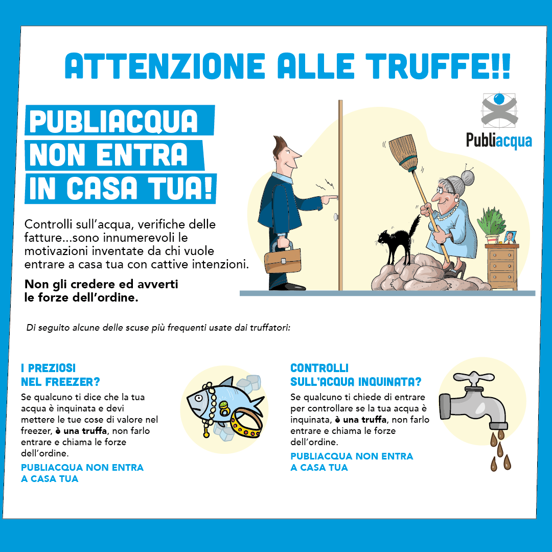 Publiacqua invita i cittadini a segnalare prontamente alla nostra azienda o alle forze dell’ordine ogni episodio o richiesta sospetta.