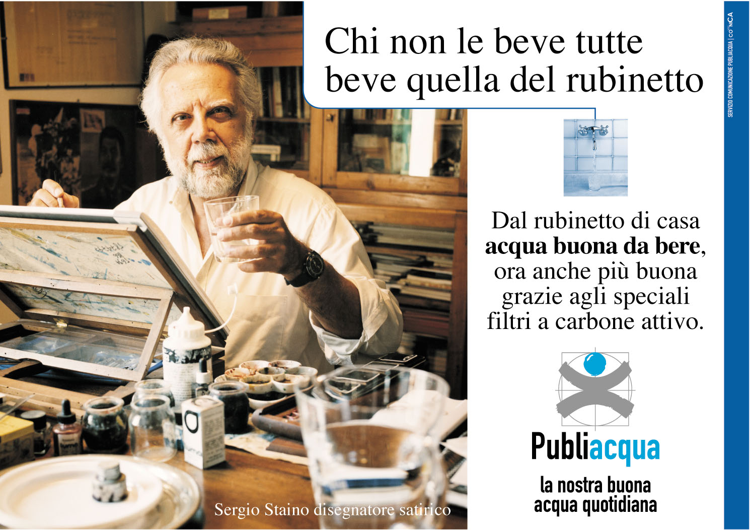 Per la prima volta Publiacqua invita i cittadini a bere l'acqua del rubinetto non solo perché è sicura ma anche perché oggi, dopo l'introduzione dei filtri a carbone attivo granulare nella filiera di trattamento dell'impianto di potabilizzazione dell'Anconella, è apprezzabile anche al gusto.