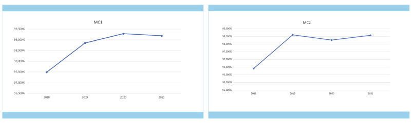 Gli standard si dividono in specifici (28 standard) e generali (14 standard). Nel primo caso il mancato rispetto dell’obbligo determina un indennizzo a favore dell’utenza. Nel secondo caso il mancato rispetto dei livelli di prestazione fissati può determinare sanzioni al gestore. Le prestazioni sono misurate annualmente da ARERA che ha definito anche un sistema incentivante (con premi e penali) per garantire i livelli di qualità delle prestazioni e misurare i gestori a livello nazionale rispetto all’erogazione dei servizi. Per poter effettuare una comparazione sintetica tra i gestori, l'Autorità ha raggruppato gli indicatori in due macro indicatori: MC1 - "Avvio e cessazione del rapporto contrattuale" - e MC2 - "Gestione del rapporto contrattuale e accessibilità del servizio".Nelle tabelle è evidenziata l'evoluzione della percentuale delle pratiche erogate nei tempi previsti dalla Carta del Servizio da Publiacqua.